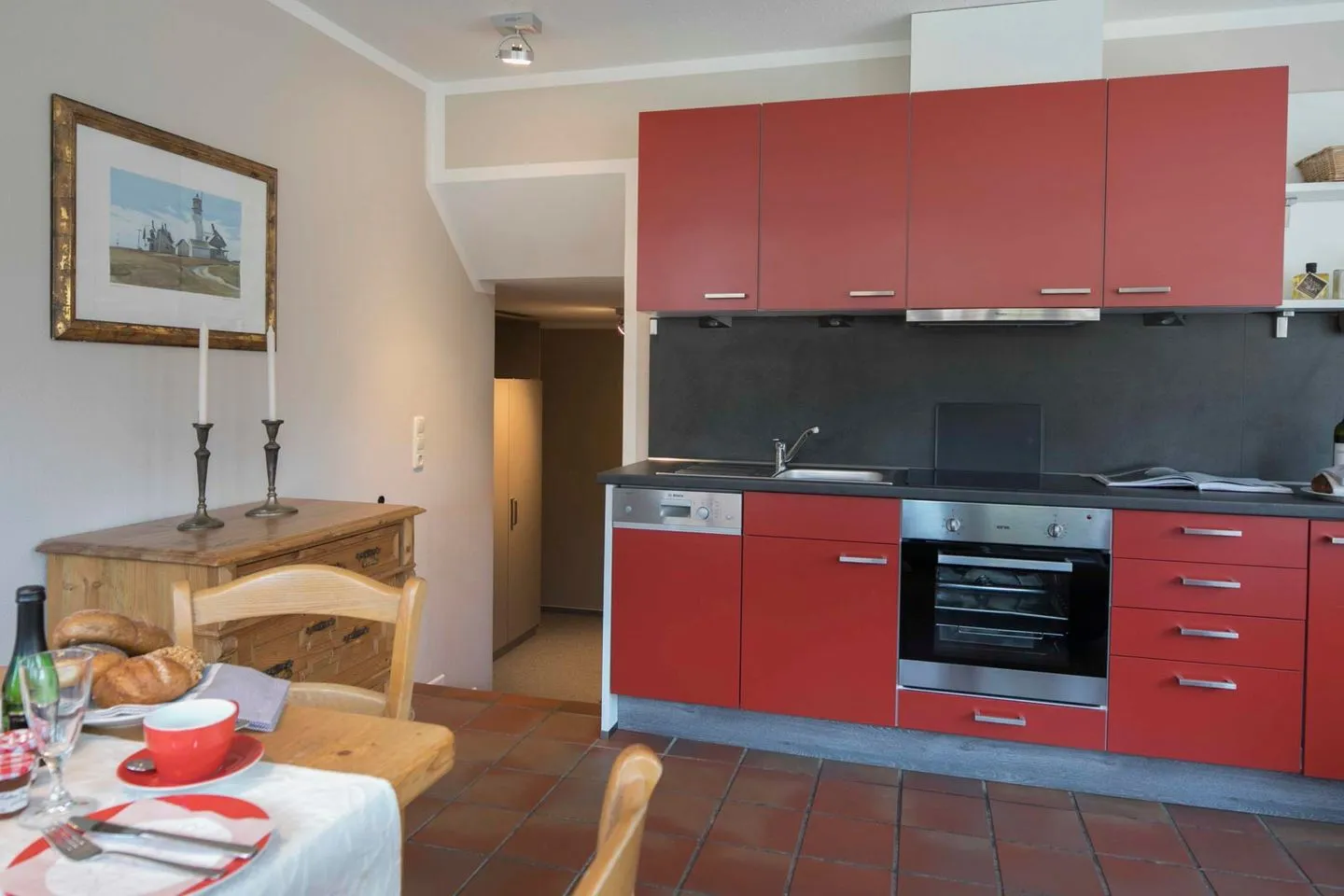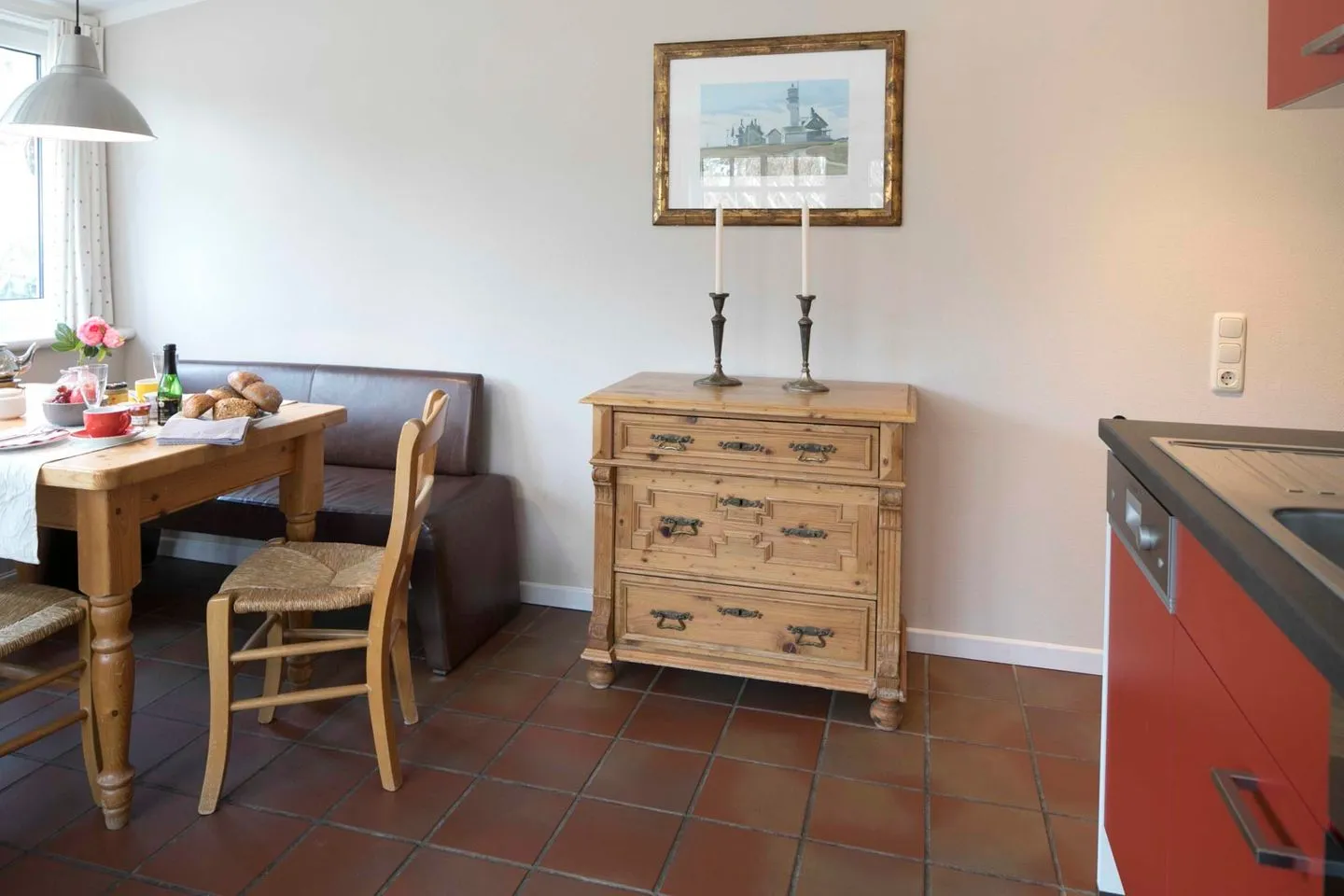 Mit liebevoll ausgewählten Wohnaccessoires schafft die Wohnung eine freundliche und schöne Atmosphäre. Zur Wohnung gehört zudem eine helle, sonnige Terrasse mit Sitzecke und Strandkorb, ideal für entspannte Stunden im Freien.