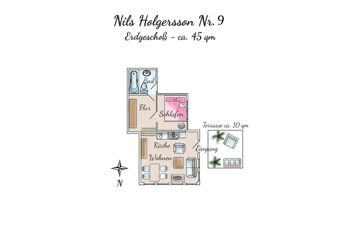 45 m2 Ferienwohnung HochparterreFerienhaus Nils Holgersson GmbH & Co KG